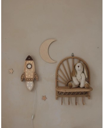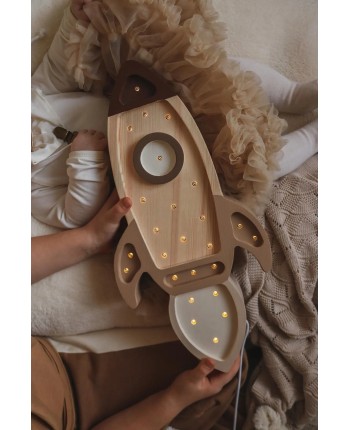 Soft, earthy colors meet playful design in this rocket-shaped wooden night light. With its warm glow and natural wood texture, it adds a calming, storybook charm to any child’s bedroom or nursery.