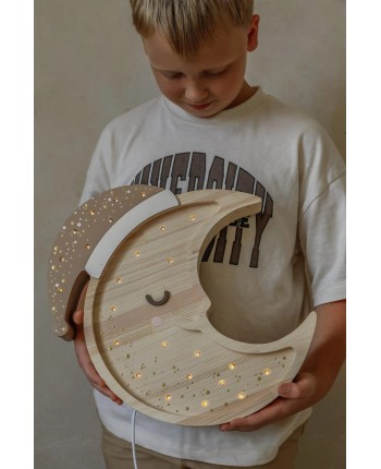 A sleepy little moon sprinkled with lights—perfect for bringing a warm, magical glow to bedtime stories and sweet dreams.