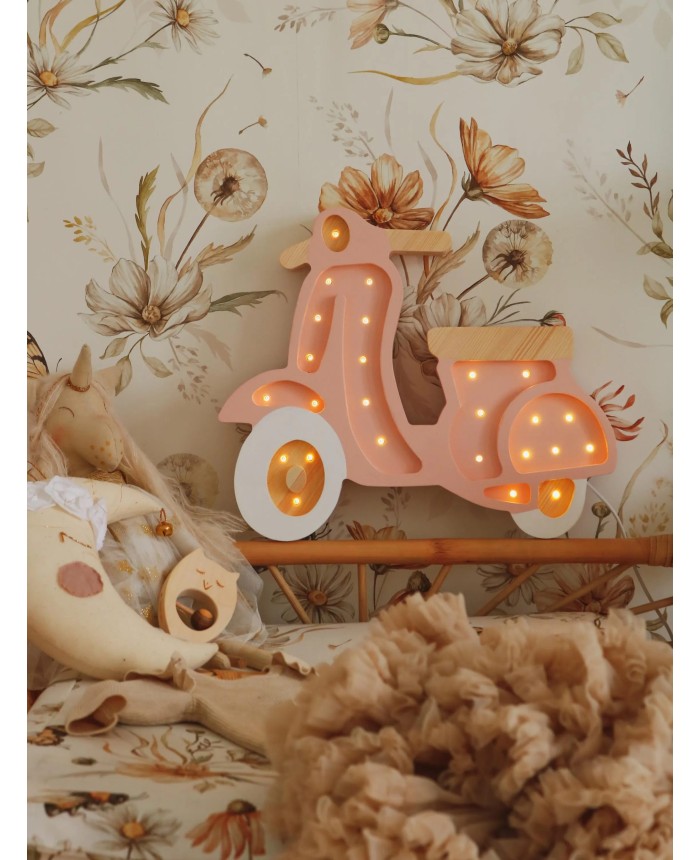 A charming little scooter sprinkled with glowing dots—ideal for adding warmth, comfort, and a touch of playful nostalgia to bedtime