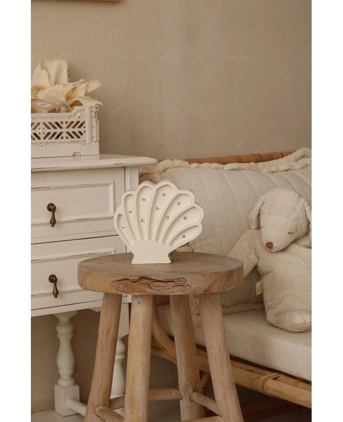 A glowing seashell filled with tiny, pearl-like lights—perfect for bringing a gentle ocean breeze and soft coastal charm to bedtime.