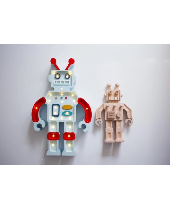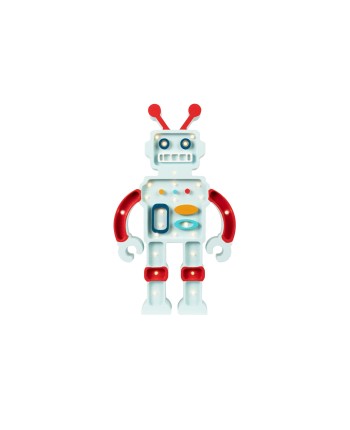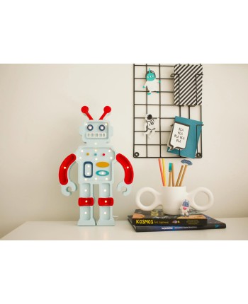 This cheerful robot-shaped wooden night light brings a burst of color and fun to any child’s room. With its retro-style design, bright red arms and antennae, and tiny glowing LED “buttons,” it creates a playful yet soothing atmosphere that turns bedtime into an adventure.