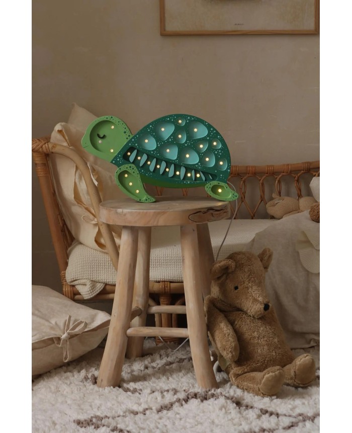 This charming turtle-shaped wooden night light brings a soothing, coastal warmth to any child’s room. With its sweet sleepy face, layered green shell, and soft glowing LED “spots,” it creates a calm, comforting atmosphere perfect for bedtime or quiet playtime.